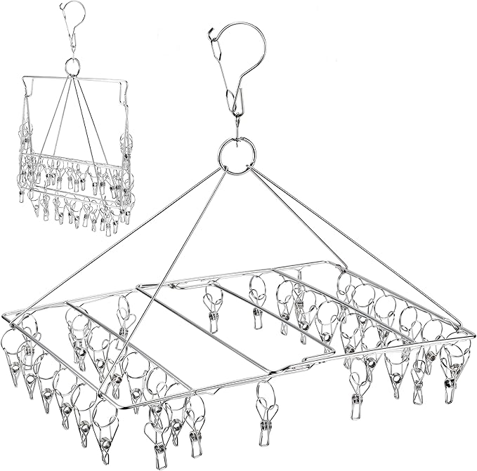 - 【Stainless Steel and Durable】This foldable sock hanger is fully made of solid stainless steel, strong bearing capacity of full-loaded, won’t deform or break with hanging wet clothes