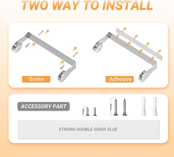 - SPACE-SAVING PAPER TOWEL HOLDER: Stick on kitchen accessories paper towel holder can be installed in different space vertically or horizontally.Save more space on your counter,perfect for kitchen,bathroom,workshop,craft room or any other space which you need to access to paper towels.
