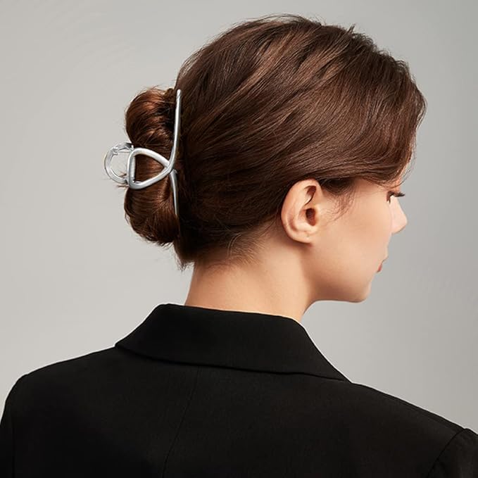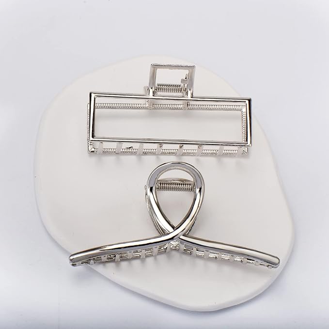 - 🎁【4 Different Claws】You will get 4 different hair claws in silver color, simple and fashionable hair claw jaw clips which size are about 3.5 to 4.3 inches, they are fit for any dress, dating hairstyle you wear to match all your daily outfits.