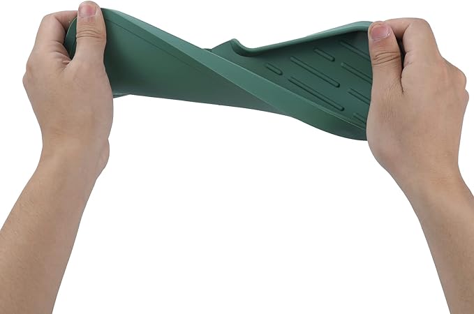 Silicone Bathroom Soap Dishes with Drain Spout-Bathroom and Kitchen Sink Organizer,Sponge Holder,Dish Soap Tray,Perfect for Dispenser,Scrubber,Bottle,Cup on Sink or Counter-Green 12"×4"