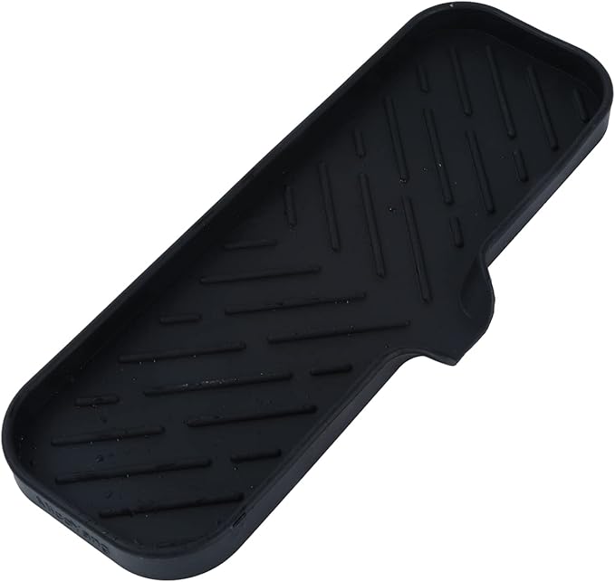 Silicone Bathroom Soap Dishes with Drain Spout-Bathroom and Kitchen Sink Organizer,Sponge Holder,Dish Soap Tray,Perfect for Dispenser,Scrubber,Bottle,Cup on Sink or Counter-Black 12"×4"