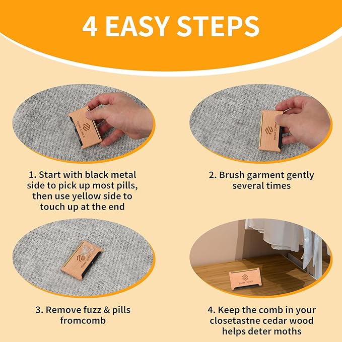 - Double-Sided Design: Our defuzzer fabric shaver for clothing features a double-sided wooden design with a copper comb and a fiber cloth shaving end that can tackle any fuzz removing task, leaving your clothes clean and smooth!