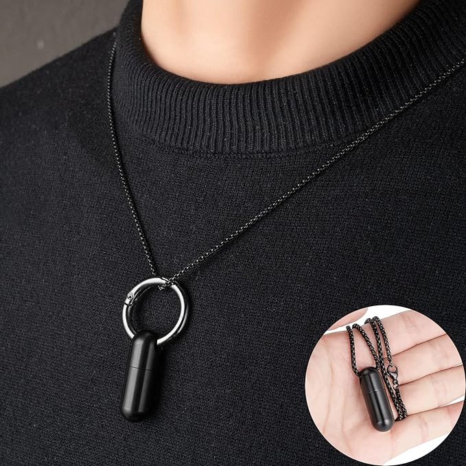 - What You Get: 1×TISUR Tiny Titanium Pill Holder Keychain+1×Quick Release Keyrings+1x Black Necklace.