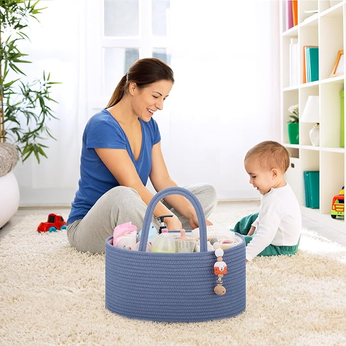 - Multi Purpose Caddy Organizer: In addition to being used diaper storage basket or changing station organizer, this nursery storage basket also can be used as breast pump caddy, car diaper caddy, wipes caddy, toy caddy, craft caddy, grocery basket, portable tote and etc. It looks perfect on dresser top, next to diaper pail, bedside, crib,in the car and etc.