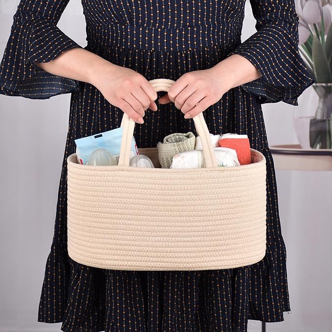 - Multi Purpose Caddy Organizer: In addition to being used diaper storage basket or changing station organizer, this nursery storage basket also can be used as breast pump caddy, car diaper caddy, wipes caddy, toy caddy, craft caddy, grocery basket, portable tote and etc. It looks perfect on dresser top, next to diaper pail, bedside, crib,in the car and etc.