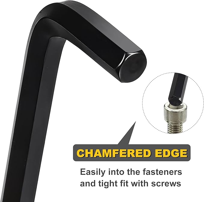 - Product size:0.05", 1/16", 5/64", 3/32", 7/64", 1/8", 9/64", 5/32", 3/16", 7/32", 1/4", 5/16", 3/8"; 1.27mm, 1.5mm, 2mm, 2.5 mm, 3 mm, 3.5mm, 4 mm, 4.5mm, 5 mm, 5.5mm, 6 mm, 8 mm, 10 mm. This allen wrench set can meet most your needs.
