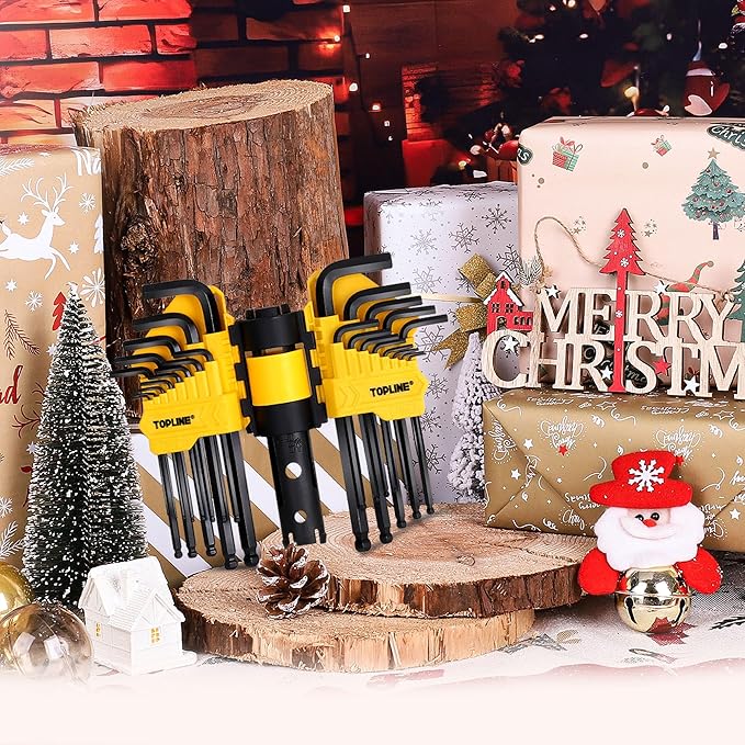 Topline 27-Piece Long Arm Allen Wrench Set with Ball End, SAE, Metric Hex Key Set Included, Hex L-Key Set, Portable Allen Key Set With Storage Rack for Basic Home Repair and General Applications