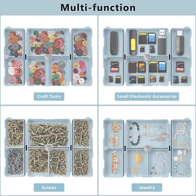 - Premium Quality: The pill organizer box is made of high-quality food-grade PP, BPA Free, durable and strong, suitable for pill storage.After you stop taking pills, you can reuse this pill box to store small items such as buttons, beads, jewelry, screws, game cards, card readers, memory cards, adapters, data cables, wired headphones,small IT-related items and so on.