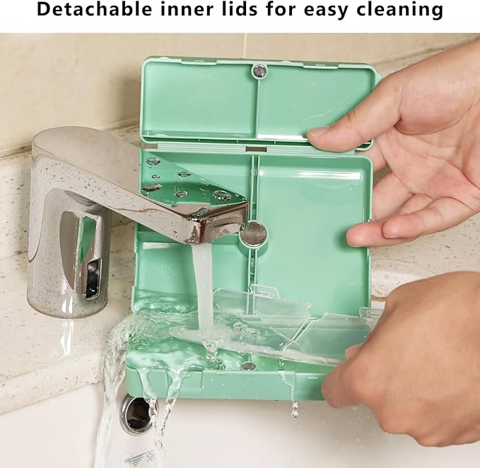 - Upgrade Materials: The hinges were replaced with higher quality materials and can withstand 10,000 uses. Magnet is also upgraded to ensure stable closure. Inner lid and magnetic closure provide double protection,doesn't pop open even if dropped,say goodbye to accidental pill spills. The detachable cover is easy to clean.