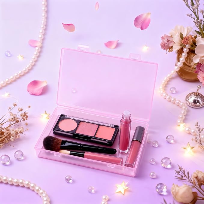 LJY 6 Pieces Rectangular Empty Mini Plastic Organizer Storage Box Containers with Hinged Lids (7.1 x 4.3 x 1.2 inch, Pink)
