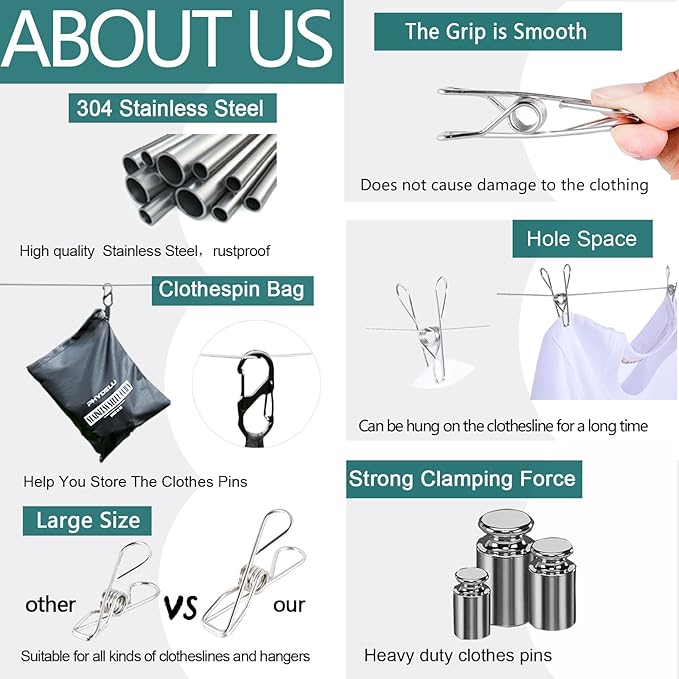 - [Service] 2 years of rusty stainless steel clothespins, free to replace the new stainless steel clothespins. Whenever you encounter any problem, you can contact us, we will reply you within 24 hours and provide you with satisfactory solutions
