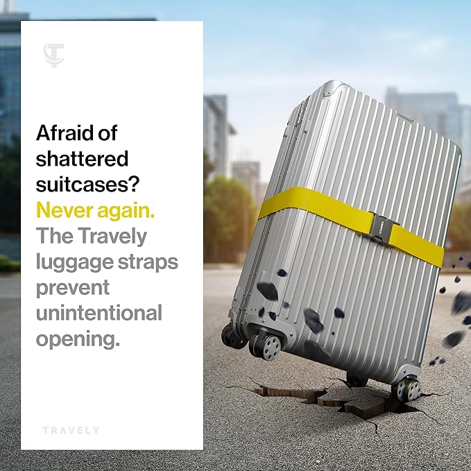 TRAVELY Luggage Straps - Particularly conspicuous & Secure - Incl. 4 Name Tags - Luggage Strap Ideal crosswise - [Set of 4]