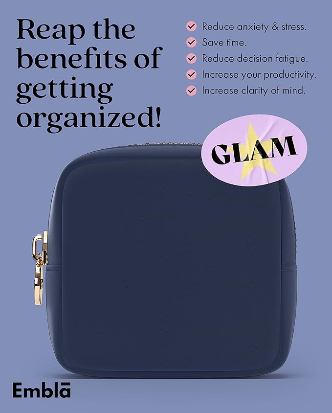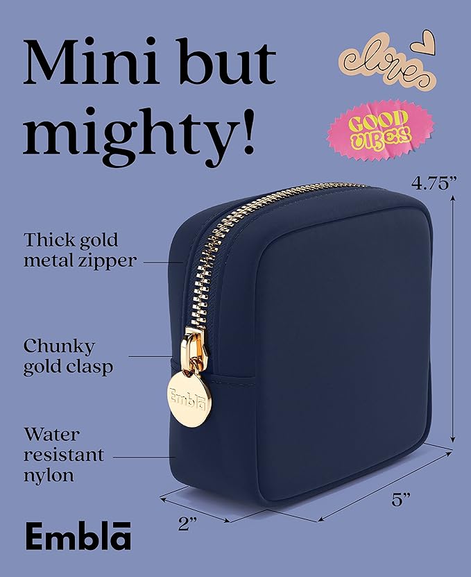 - TRAVEL + CUTE = EMBLA! - Our bags are THE trendy & preppy storage gifts! Simply pick your size (Mini, Large or XL) and start organizing all of your makeup, lipstick, hair stuff, snacks and jewelry accessories! Or use it as a clutch handbag, makeup brush holder, skin care bag, zippered carry case or coin purse wallet!