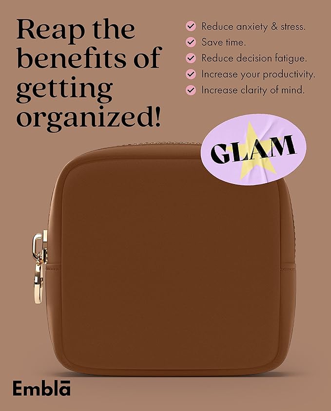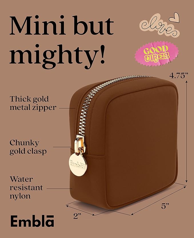 - TRAVEL + CUTE = EMBLA! - Our bags are THE trendy & preppy storage gifts! Simply pick your size (Mini, Large or XL) and start organizing all of your makeup, lipstick, hair stuff, snacks and jewelry accessories! Or use it as a clutch handbag, makeup brush holder, skin care bag, zippered carry case or coin purse wallet!