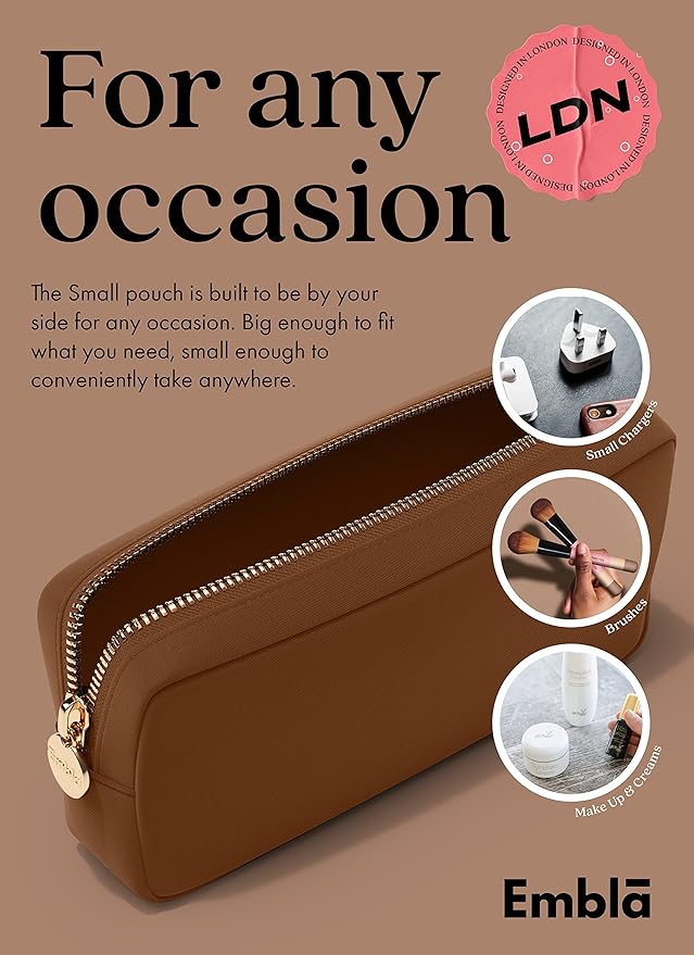 Embla Makeup Bag Travel Cosmetics Pouch and Toiletry Bag, Nylon Zipper Pouch Purse, Cute Make Up Organizer Storage Tote for Women Girls, Waterproof Travel Skincare Case, Small Makeup Bags, Chocolate