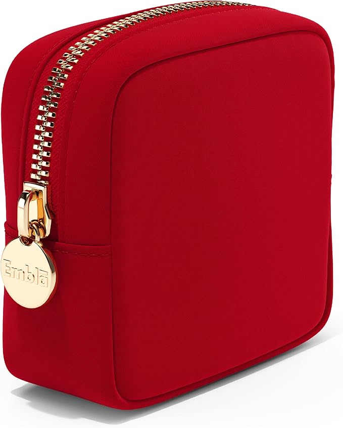 Embla Makeup Bag Travel Cosmetics Pouch and Toiletry Bag, Nylon Zipper Pouch Purse, Cute Make Up Organizer Storage Tote for Women Girls, Waterproof Travel Skincare Case, Small Makeup Bags, Ruby Red