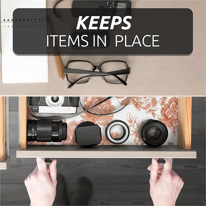 - Excellent Material - The shelf liners are made of excellent PVC material that is non-adhesive and non-slip. To reduce slipping and bunching in your drawers or cabinet shelves, we have added a non-slip texture design on the bottom that increases friction, keeping the liner in place on surfaces and preventing items from moving