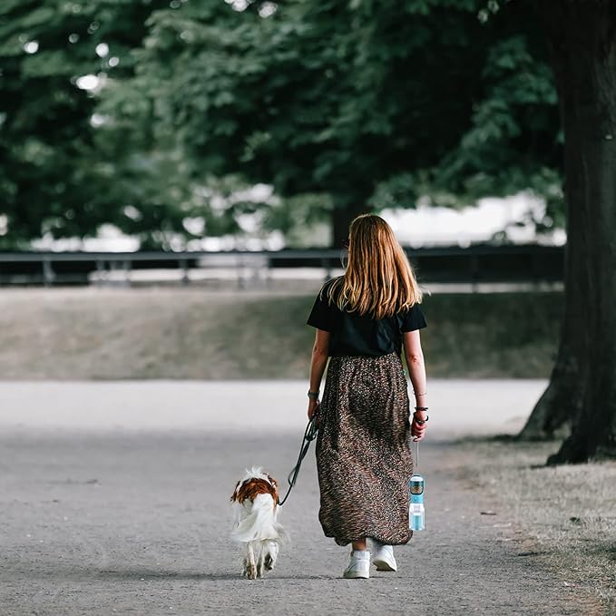 - Optional Colors Sizes & Poop Bag Holder: There are multiple fashion colors and 2 sizes(12oz and 20oz). Inner poop bag holder is designed in the bottom of bottle, pull the poop bag out through the gap on the bottom when first use. The poop bag holder expands to a larger size on October 2,2025. You can fit most poop bags in it
