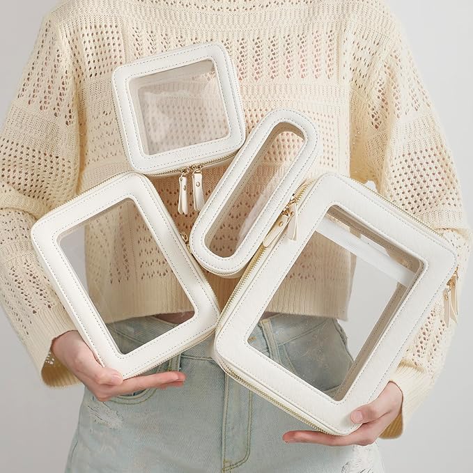 Aveniee Clear Makeup Bag Organizer,Large Travel Toiletry Bag for Women, Waterproof Cosmetic Pouch with Zippers,Car Organizers and Storage Case for Accessories,White