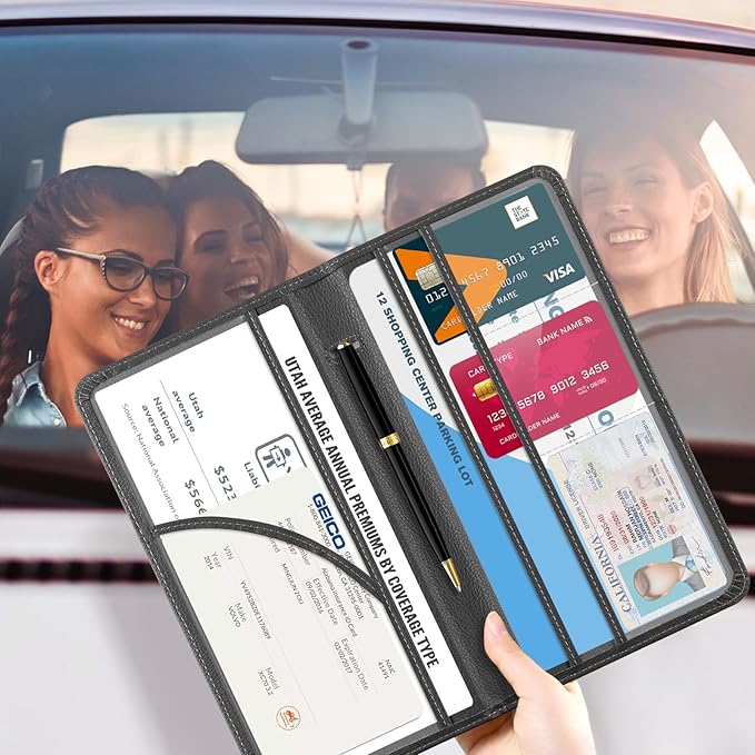 - 6 COMPARMENTS: Comes with 3 large pockets for insurance documents, vehicle registrations cards and other valueable information. And 3 small pocket for driver's license, ID cards, business cards, key contact information cards.