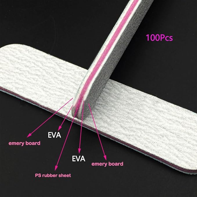 - 100/180 grit nail file designed with round top & double sides, sandpaper on surface, PS rubber sheet in middle-level