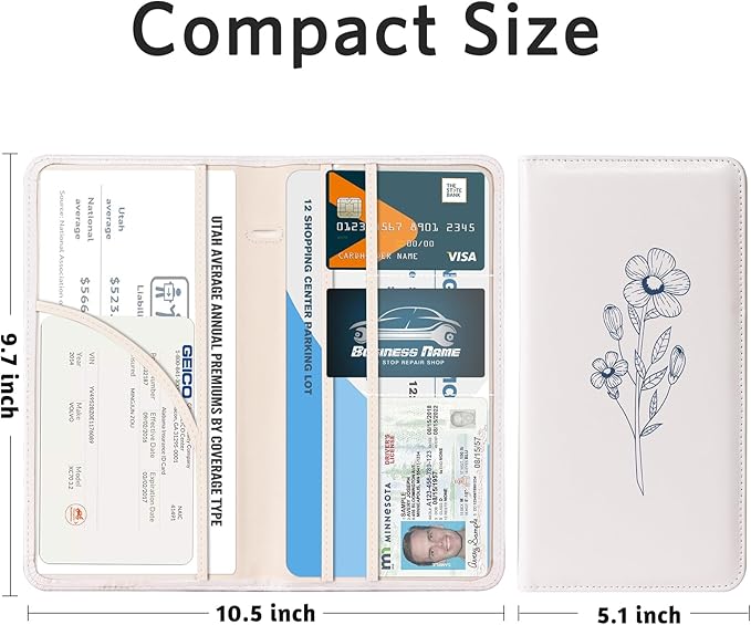 - COMPACT SIZE: 9.5" x 5.1"(24cm x 13cm), slim profile and lightweight design, perfect size for any glove box or console compartment, ideal choice to protect your important documents. Also a great gift for yourself, lovers, friends and family.