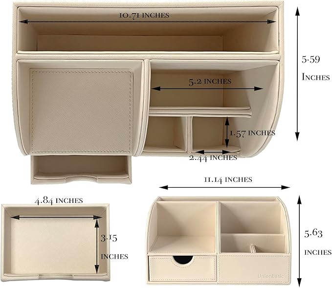 UnionBasic Desk Organizer - Multifunctional Leather Desktop Pen Holder Storage Box - Business Card/Pen/Pencil/Mobile Phone/Stationery Holder, Beige Revised
