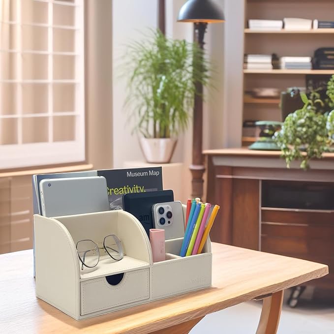 - Efficient Organization: Keep your desk and workspace tidy and organized with this desk organizer that has multiple compartments to store your pens, pencils, phone, remote control, envelopes, cosmetics, scissors and other home or office supplies. With a designated place for everything, you can keep track of all office supplies, and avoid the frustration of misplacing items