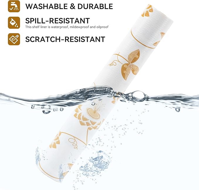 - EASY CARE---RAY STAR heavy duty kitchen cabinet shelf drawer lining is waterproof. The top EVA layer is relatively smooth without small holes, which makes cleaning easier. Just take a damp paper towel to wipe it, and it's clean!