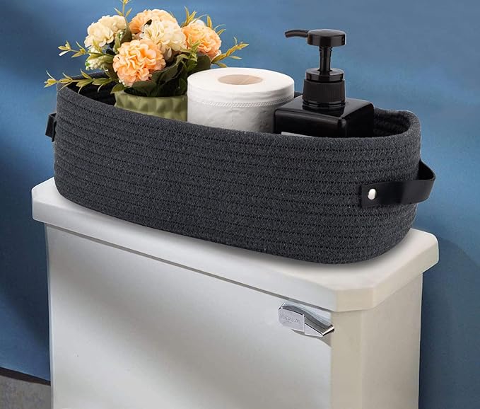 - ๐Multi-purpose: Decor storage basket fits nicely on the counter or toilet tank,and is perfect to hold vase,planter,air freshener,soap dispenser.This storage basket can be used not only in the bathroom,but also as a organizer in living room,bedroom or nursery