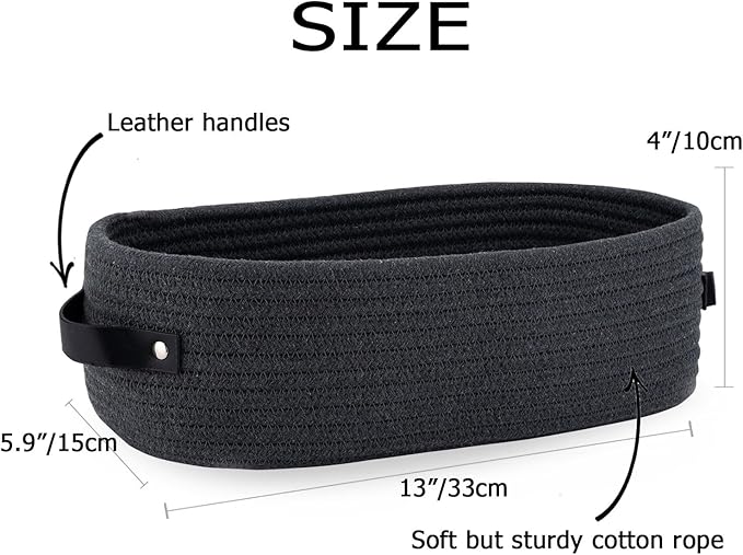 Cotton Rope Toilet Paper Holder Basket with Handle, Home Decor Organizing Small Baskets, Nursery Basket 13"x5.9"x4" Dark Gray