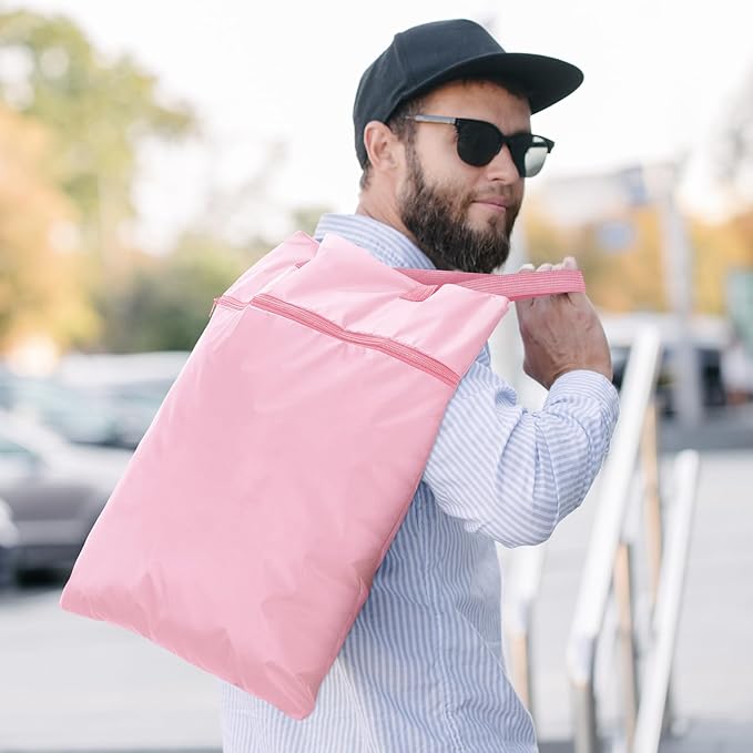 2 Pcs Travel Laundry Bags Waterproof with Handle Dirty Clothes Bag for Traveling Hanging Laundry Hamper with Two Zippered Pockets Washable Reusable for Sports Home Travel College Dorm (Pink)