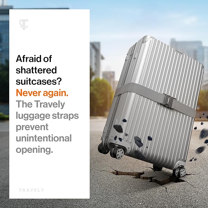 TRAVELY Luggage Straps - Particularly conspicuous & Secure - Incl. 4 Name Tags - Luggage Strap Ideal crosswise - [Set of 4]