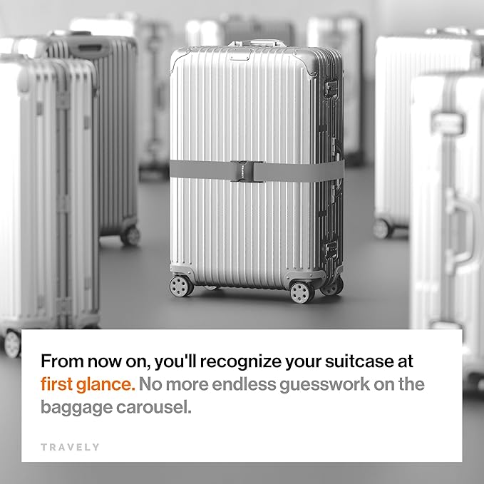 TRAVELY Luggage Straps - Particularly conspicuous & Secure - Incl. 2 Name Tags - Luggage Strap Ideal crosswise - [Set of 2]