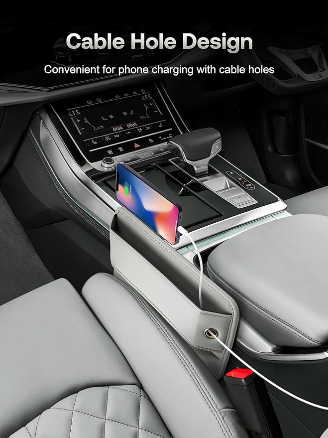 - 【SAFETY & LIFETIME WARRANTY】- Owntow car seat accessories is a slim design that allows for seat and seat belt to not be affected. There are holes in either end to pass the phone charger cord through and keep the cable organized. Most importantly, the car seat gap organizer doesn’t block your cup holders - nothing comes between you and your coffee. Please rest assured to place your order, the refund will be unimpeded if you are not satisfied within 90 days.