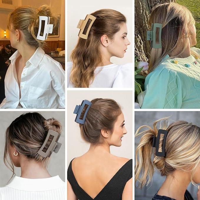 - Wide Applications: These trending square claw clips for thick hair can hold all your hair up tightly when you’re cleaning your face, bathing, making up, cooking, doing chores or working. It’s for your everyday use!High Quality: High-quality rubber paint. Durable acrylic & plastic material. Strong metal springs. Non- Slip design. Easy to use and hard to break.