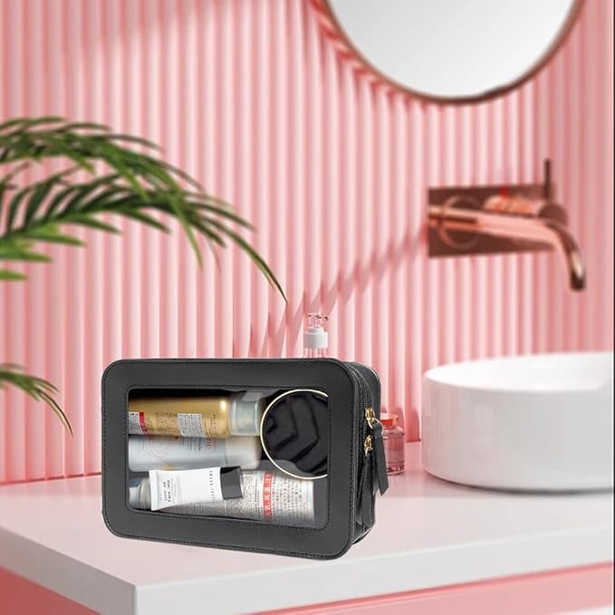 - Clear Design: Clear makeup bag are transparent and durable, eco-friendly Waterproof material to see and get items quickly. Design with translucent material and double large opening zipper, allows you to see what is stored and where it is and making it convenient to pack and save time to find what you need