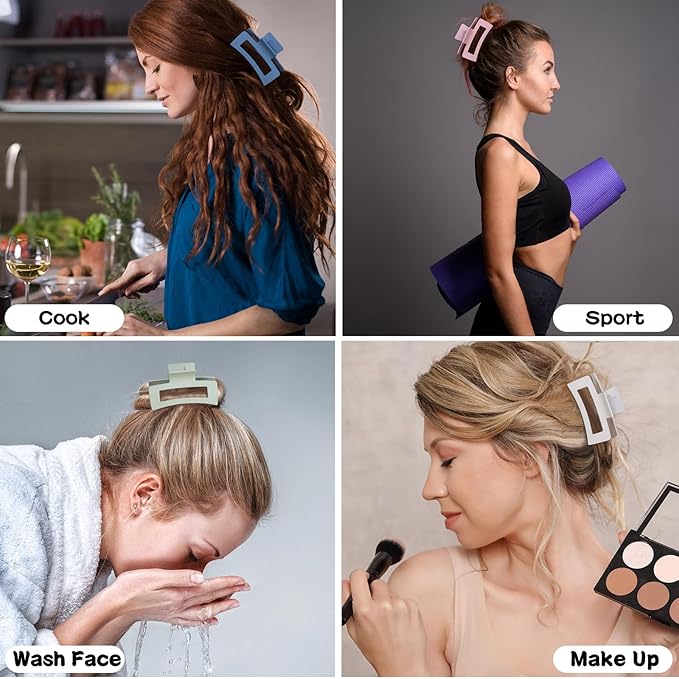 - High Quality: These hair claw clips are made of high-quality rubber paint and plastic materials, strong metal springs. Comfortable matte texture and Acrylic quality and Non- Slip design.