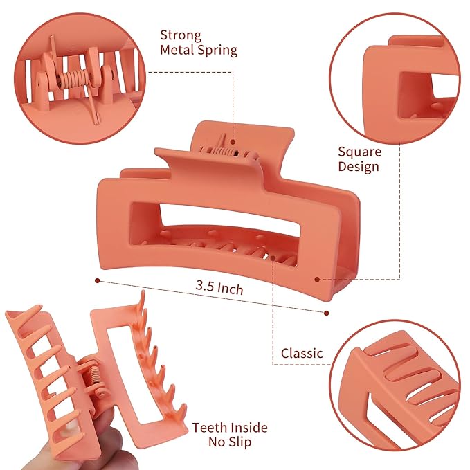 - High Quality: These hair claw clips are made of high-quality rubber paint and plastic materials, strong metal springs. Comfortable matte texture and Acrylic quality and Non- Slip design.