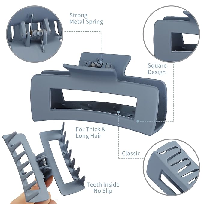 - High Quality: These hair claw clips are made of high-quality rubber paint and plastic materials, strong metal springs. Comfortable matte texture and Acrylic quality and Non- Slip design.