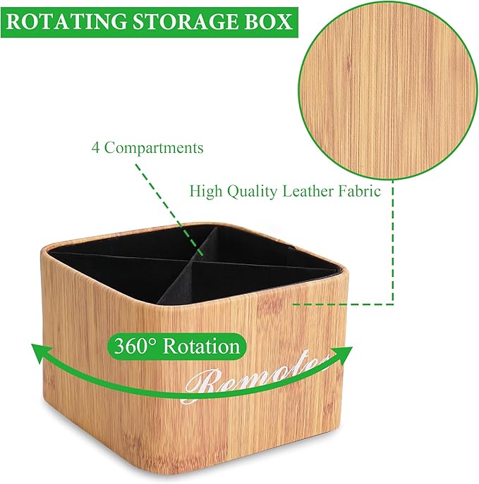 Hennaja Square Leather Art Supply Organizer,Remote Control Holder with Removable Dividers,360°Rotatable Pencil Holders,4 Compartments Organizer for Office Supplies Storage Box(1-Beige)