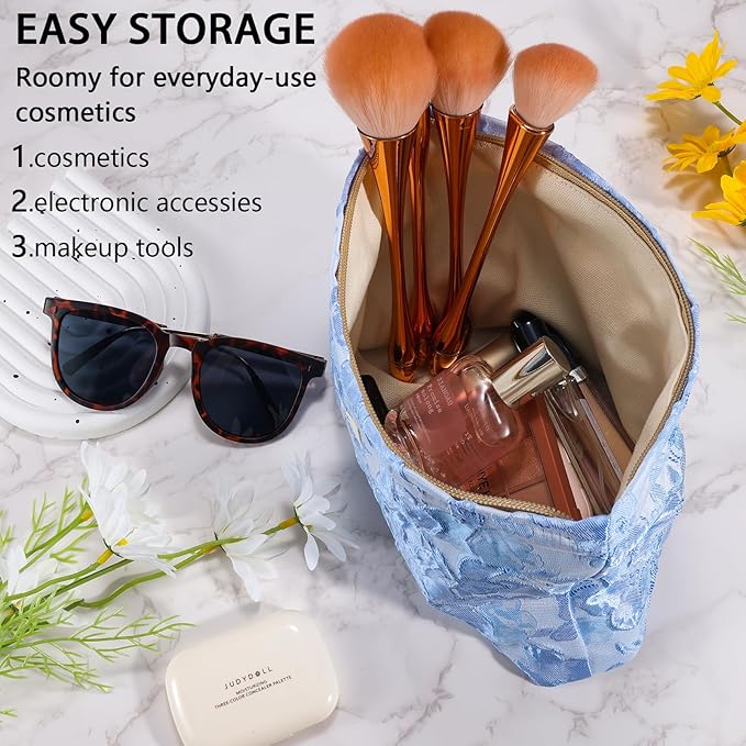 - Large Capacity: Our flower makeup bag measures 10.6×7.1×2 inches, easy to carry. This flower cosmetic bag can hold small items such as makeup, skincare products, lipstick, eye shadow, eyebrow brush, etc. The makeup bag has a large capacity and folds up conveniently when not in use