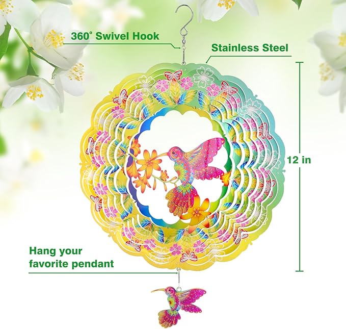 - Fine Made: These wind spinners are crafted with high-quality stainless steel, making them durable and long-lasting. The hummingbird patterns are printed using UV technology, resulting in precise and vivid colors that stand out. To ensure longevity, both sides of the spinners are coated with a protective layer that makes them resistant to rust and moisture. Additionally, the edges of the spinners have been polished to make them smooth and safe for handling.