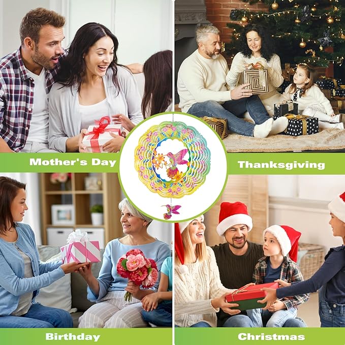 - Great Gift Option: Hummingbird wind sculptures can make for a great gift option for special occasions, such as Mother's Day, birthdays, Thanksgiving, and Christmas. Their beautiful patterns, vivid colors, and symbolic representation of hummingbirds can make them an ideal gift for your family members, like your mom, grandma, sister, etc. By gifting them a hummingbird wind sculpture, you can convey your wishes and love for them on these special days.