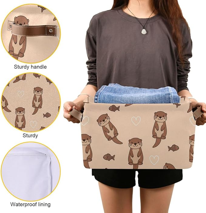 Aslsiy Storage Basket Cute Otter and Fish Nursery Bins Baby Box Canvas Clothes Shelf Basket Laundry Hamper Gift Basket for Home Dorm Closet 1 Pcs