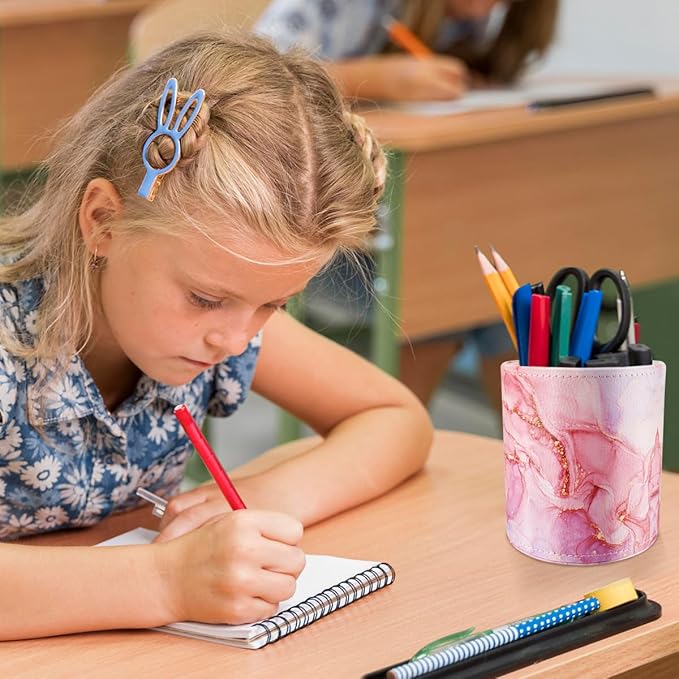 - Cute Design Pen Holder: New hot release, cute organizer cup for women girls, solid color with marble elements, never fade away, premium synthetic leather, makes your desk look fashionable and attractive.
