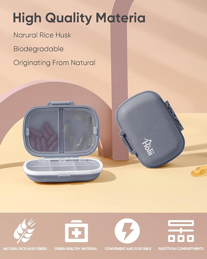 Holii Travel Pill Organizer, 8 Compartments Portable Pill Case, Daily Pill Box to Hold Vitamins, Small Pill Container for Pocket Purse Medicine Organizer(Gray)
