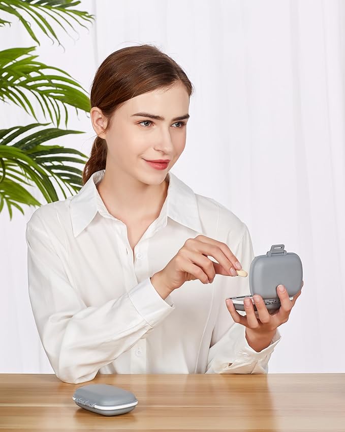 - Double Lock: The travel pill box comes with an inner lid that doesn't pop open even if dropped, the outer lock can be closed tightly without worrying about the pillbox opening on its own, and the removable silicone sealing ring and the inner lid make cleaning more concise and convenient