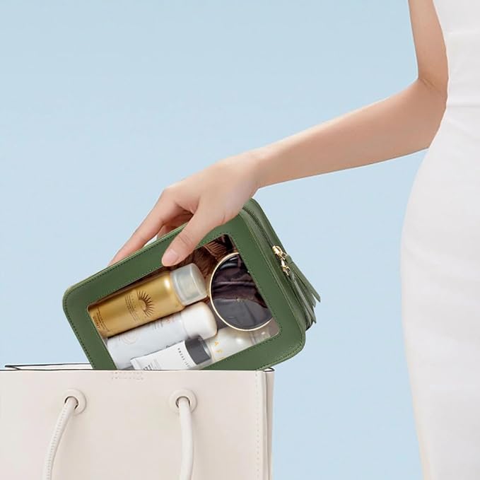 - Waterproof Premium PU: These travel toiletry bags are made of PU material,durable, and waterproof. Unlike other flimsy and collapsible pvc bags, Together with the beautiful stitches and compact leather zippers, this make up bag is durable for long-lasting use. Is easy to carrying in your handbag or carry-on Size:9.44“*6.1”*2.75“