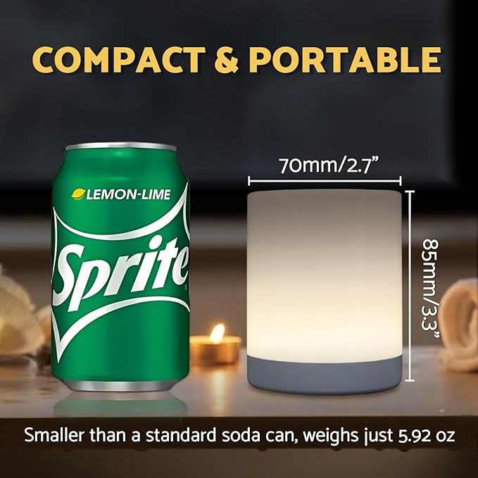 - Touch control & 3 colors - Yellow, warm white and white, 3 colors to choose to suit your needs. Just short press the button at the top to switch on and off or change colors